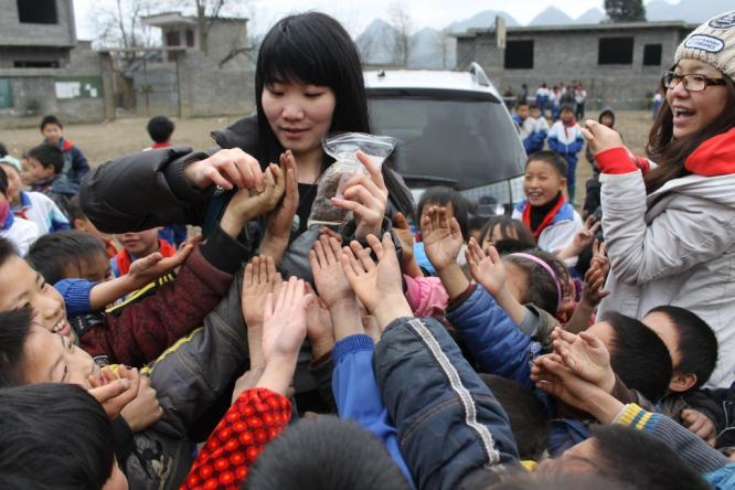 “我始終記得第一次去織金的情景。當(dāng)時,我們從貴陽出發(fā),走了5個小時的盤山公路,2個小時坑坑洼洼的盤山小路才到。難以忘記的是破敗的教室里孩子們黝黑冰冷的小手,鼻子上掛著的兩條‘小蟲’,透著冬日寒風(fēng)的衣服上的破洞。他們半倚在簡陋的桌椅邊直打哆嗦,卻依然因?yàn)槲覀兊牡絹砭`放著暖陽般的笑臉。”原廣發(fā)銀行深圳分行副行長駱向東回憶起考察邊遠(yuǎn)村小時的情景,至今仍心疼不已。