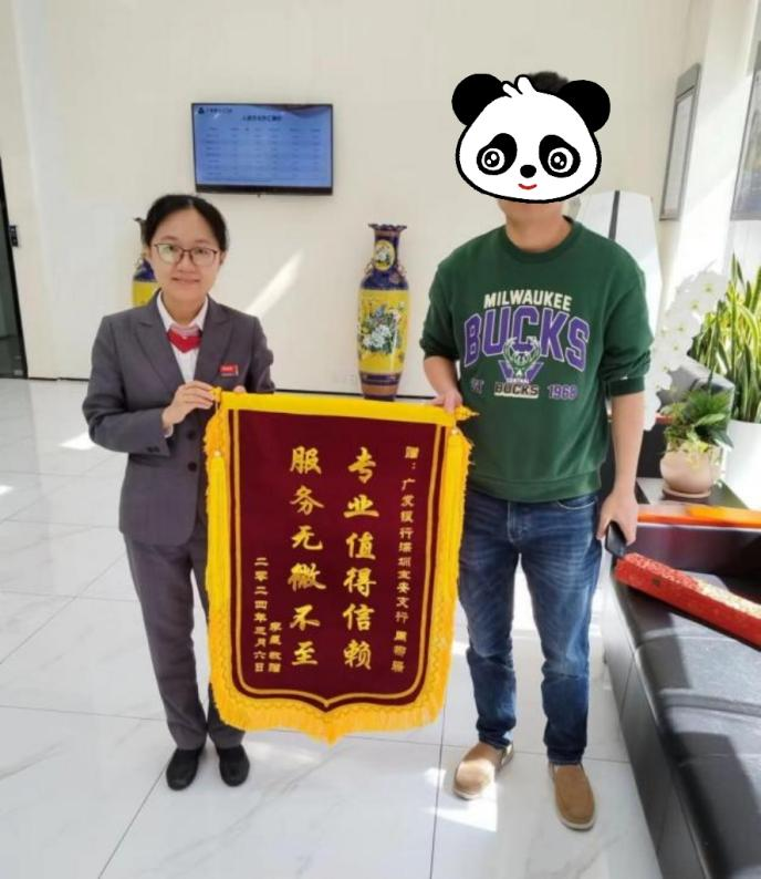 深圳新聞網(wǎng)2024年5月11日訊(記者 朱琳)“真的太感謝廣發(fā)銀行了!要不是廣發(fā)銀行專業(yè)高效的服務(wù),我這筆貨款都不知何時能付出去!”小微企業(yè)主李先生握著廣發(fā)銀行深圳寶安支行服務(wù)經(jīng)理周柳珊的手激動地說,隨后將一面印有“服務(wù)無微不至,專業(yè)值得信賴”的錦旗送到她的手中,向該行熱情、高效、暖心的服務(wù)表示感謝。錦旗上十二個金燦燦的大字寄托了客戶對廣發(fā)銀行沉甸甸的信任和堅定不移的支持。
