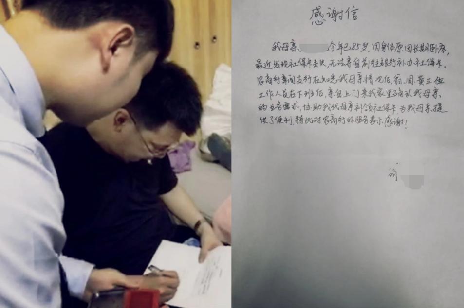 深圳農(nóng)商銀行觀(guān)瀾支行“窗口”移至“家門(mén)口”。2024年5月,觀(guān)瀾支行接到客戶(hù)翁先生反饋其85歲母親的社??ú簧鬟z失,急需補(bǔ)回卡取養(yǎng)老金。但阿婆長(zhǎng)期臥床,行動(dòng)不便,無(wú)法出門(mén)。針對(duì)此情況,觀(guān)瀾支行工作人員告知客戶(hù),可通過(guò)上門(mén)核實(shí)阿婆的情況及意愿后,由其代母親辦理。后續(xù)在確認(rèn)客戶(hù)時(shí)間后,觀(guān)瀾支行安排員工上門(mén)核實(shí)阿婆委托兒子辦理業(yè)務(wù)的意愿。在確認(rèn)其意愿清晰真實(shí)后,阿婆的兒子到網(wǎng)點(diǎn)為其代辦了相關(guān)業(yè)務(wù)。客戶(hù)為此手寫(xiě)感謝信對(duì)工作人員的貼心服務(wù)表達(dá)了感激。