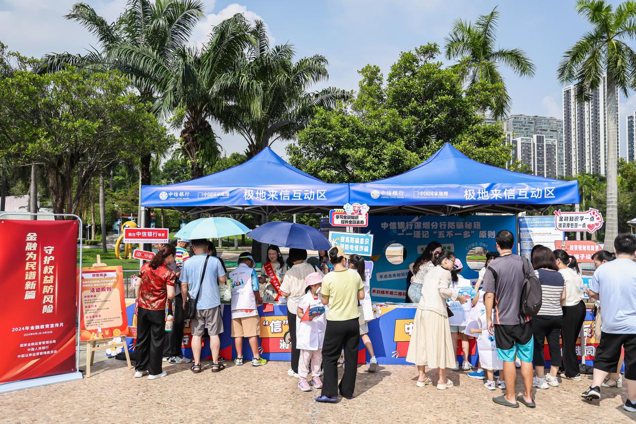 結(jié)合2024年“金融教育宣傳月”主題,在金融消保展位前,中信銀行深圳分行還以金融消保知識互動問答等方式,為市民帶來趣味金融學(xué)習(xí)體驗(yàn),幫助市民正確理解認(rèn)識金融風(fēng)險(xiǎn),進(jìn)一步提升風(fēng)險(xiǎn)防范意識和能力。該行還同時(shí)開展了反詐宣傳活動,“反詐宣講小課堂”吸引了不少親子家庭的注意力。工作人員將寓教于樂的消保拼圖游戲與涵蓋金融消費(fèi)者權(quán)益保護(hù)等內(nèi)容的金融知識相結(jié)合,全方位、多角度地普及反詐等金融知識,在輕松愉悅的氛圍中將金融風(fēng)險(xiǎn)防范意識傳遞給廣大市民。