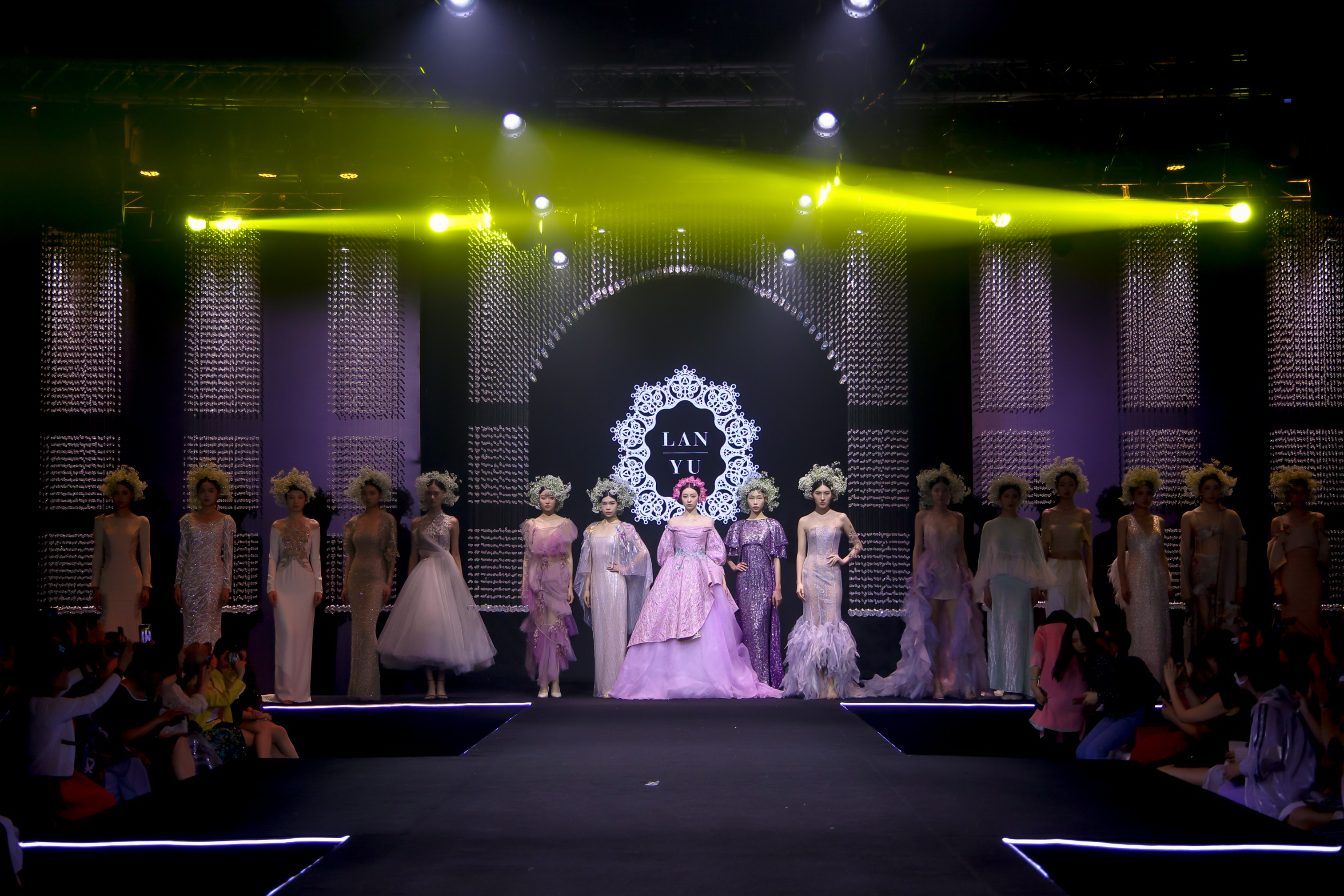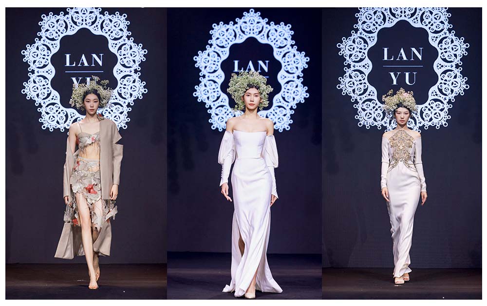 現(xiàn)場更有LANYU高定禮服展示,將中式美學意境與西式時尚剪裁完美融合,同時加重了蘇繡非遺元素的應用比例,將更多的非遺技藝融入服飾創(chuàng)作中,呈現(xiàn)出超高藝術水準。