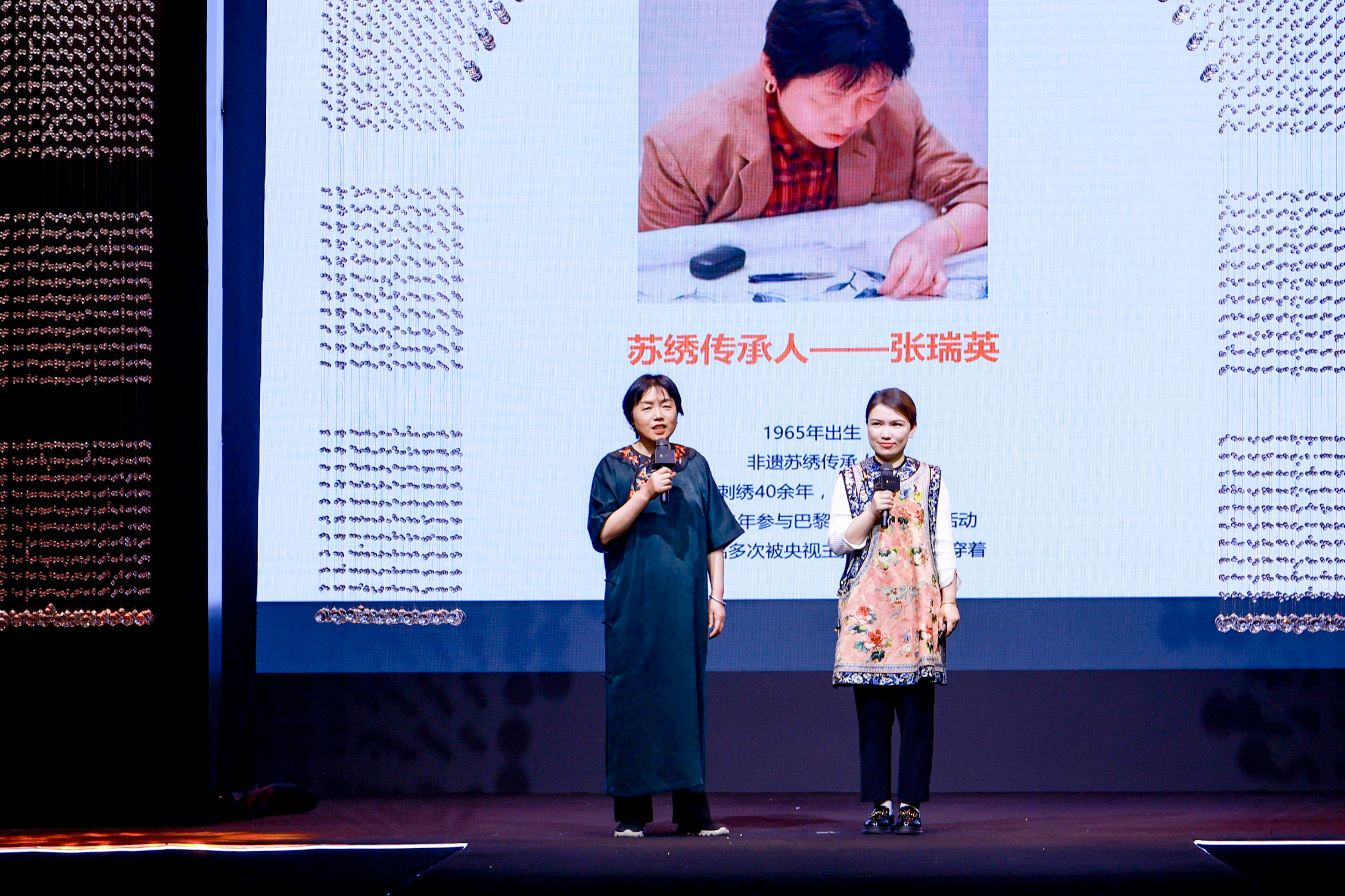 蘇繡傳人張瑞英現(xiàn)場進行了蘇繡文化講解,讓非遺傳承技藝再上舞臺,將非遺元素運用在當代的生活方式中,展現(xiàn)非遺文化非同尋常的光芒之處,傳播非遺重要傳承內核,用服裝承載國風文化,傳遞中國風采。當以蘇繡手藝復刻的百年服飾再現(xiàn)于秀場,傳統(tǒng)技藝真實演繹“經典永流傳”,彰顯了傳承中國文化的手工技藝“奢侈品”含義。