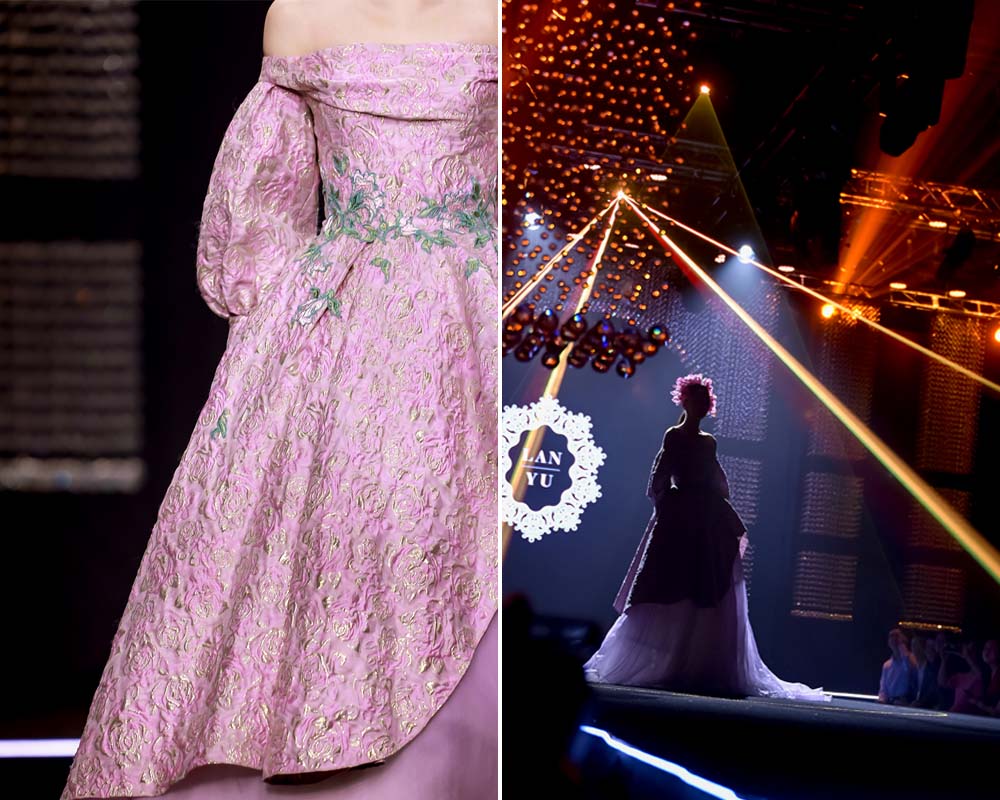 值得一提的是,LANYU品牌帶來了歷屆發(fā)布經典系列中的代表作品,展出設計融合了蘇繡藝術的經典手工技藝特色及現(xiàn)代時裝設計的新鮮潮流之美,綻放出了美輪美奐的視覺藝術效果,國風文化與國際時尚撞了個滿懷,讓現(xiàn)場觀眾贊嘆不已。