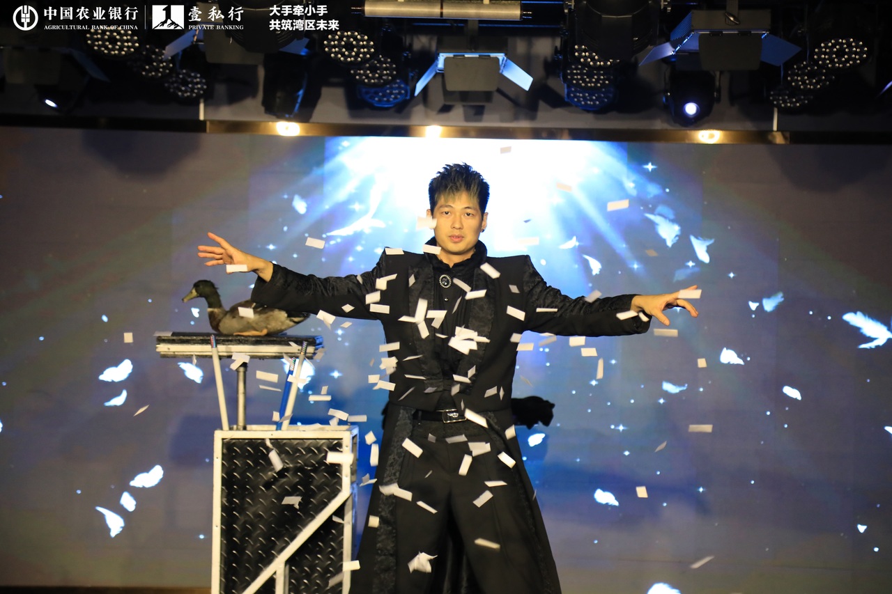 在騎鯨劇場(chǎng)里,奇幻魔術(shù)秀環(huán)節(jié),來自農(nóng)業(yè)銀行的小朋友被抽中上臺(tái),與魔術(shù)師共同感受魔術(shù)的魅力。