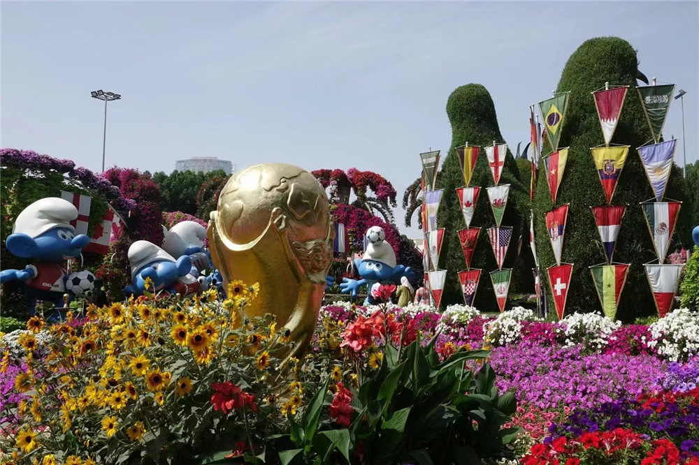 4500萬株鮮花以不同的主題分區(qū)布展,今年的主題包括野生動物保護(hù)、卡塔爾世界杯、藍(lán)精靈等。李仁奇 攝