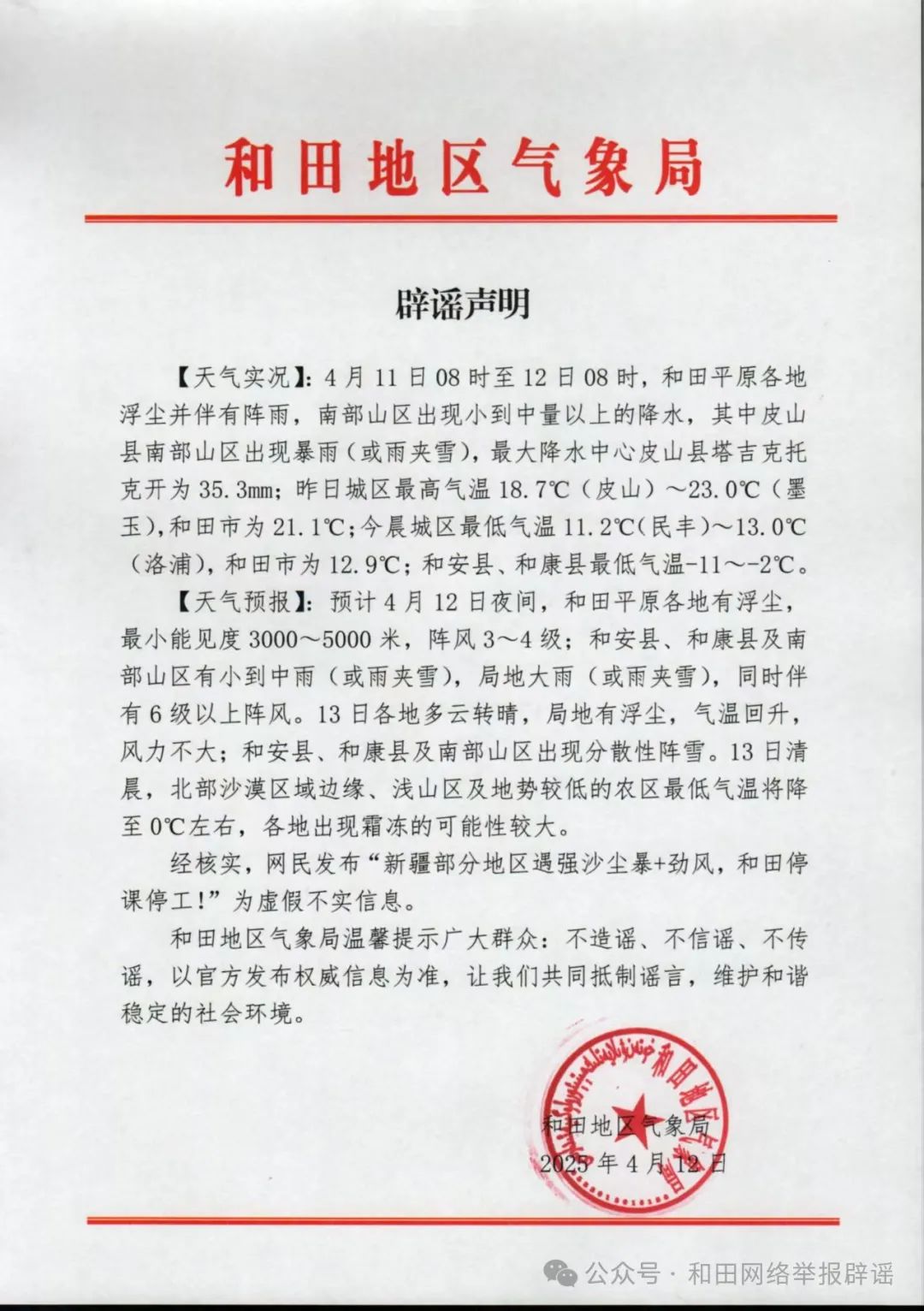 經(jīng)和田地區(qū)氣象局核實(shí),網(wǎng)傳信息系謠言。