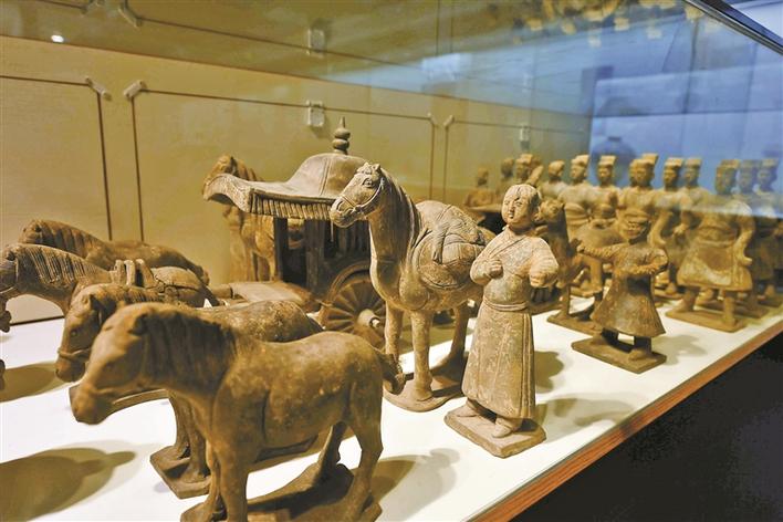 深圳古玩城展出的“黑陶車馬駱駝俑一組”。