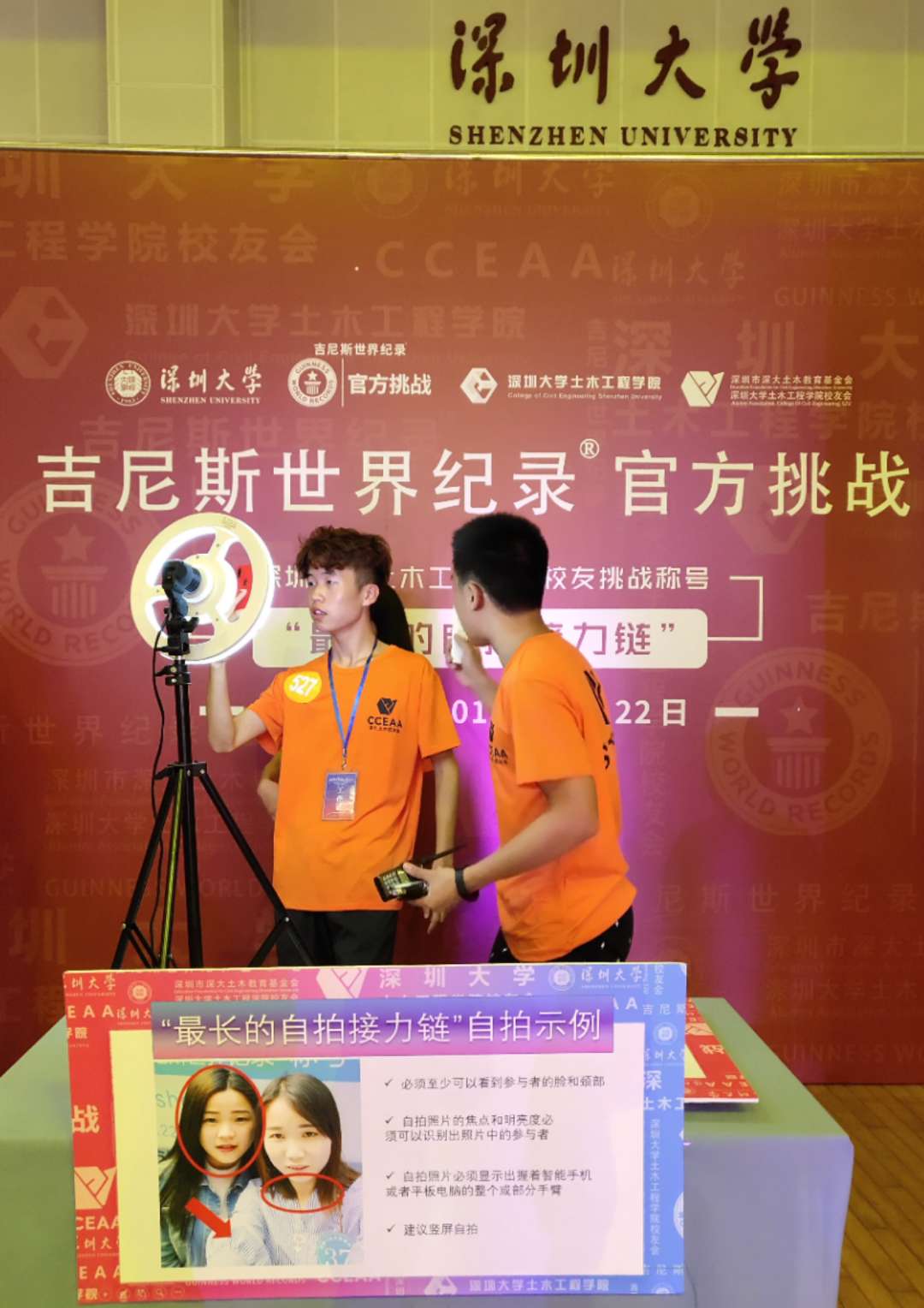 深圳新聞網(wǎng)訊 9月22日下午3點,深圳大學(xué)土木工程學(xué)院千名師生、校友齊聚深圳大學(xué)元平體育館,成功創(chuàng)造“最長的自拍鏈條”吉尼斯世界紀錄 TM 稱號。