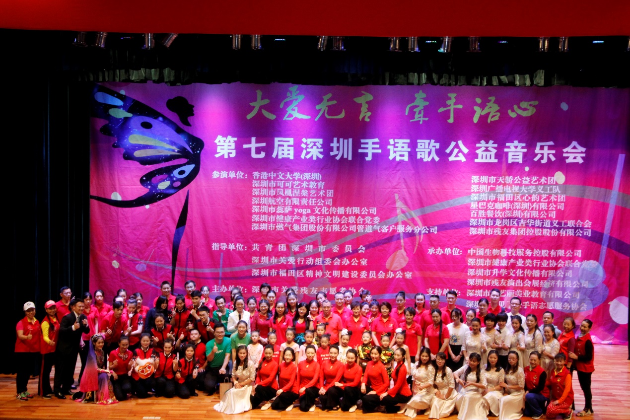 據(jù)悉,本屆手語歌公益音樂會由深圳市福田區(qū)宣傳文化體育事業(yè)發(fā)展專項資金資助,同時獲得市委宣傳部、市共青團、市關愛辦、區(qū)精神文明辦的大力支持,由深圳市關愛殘友志愿者協(xié)會主辦,中國生物科技服務控股有限公司、深圳市健康產(chǎn)業(yè)類行業(yè)協(xié)會聯(lián)合黨委、深圳市升學文化傳播有限公司和深圳市殘友演出會展經(jīng)濟有限公司等單位聯(lián)合協(xié)辦。自2008年首屆手語歌公益音樂會舉辦以來,歷屆“深圳手語歌公益音樂會”都會邀請政府、企事業(yè)單位、社會團體等學習手語歌舞、舉行大型公益匯演。(張俊達)