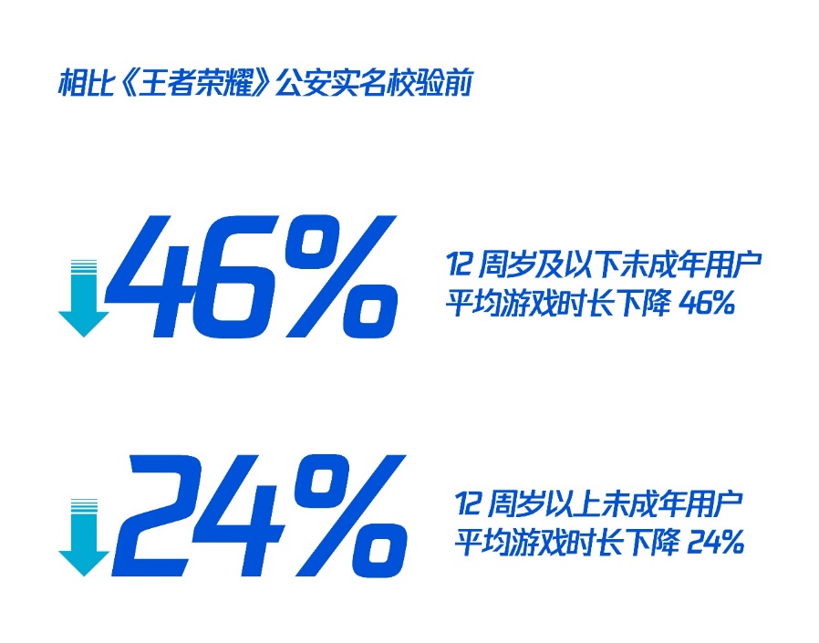 通過公安實名校驗的工作,未成年用戶的身份得到更精準(zhǔn)的判斷,平均游戲時長也呈現(xiàn)可見、顯著的下降。