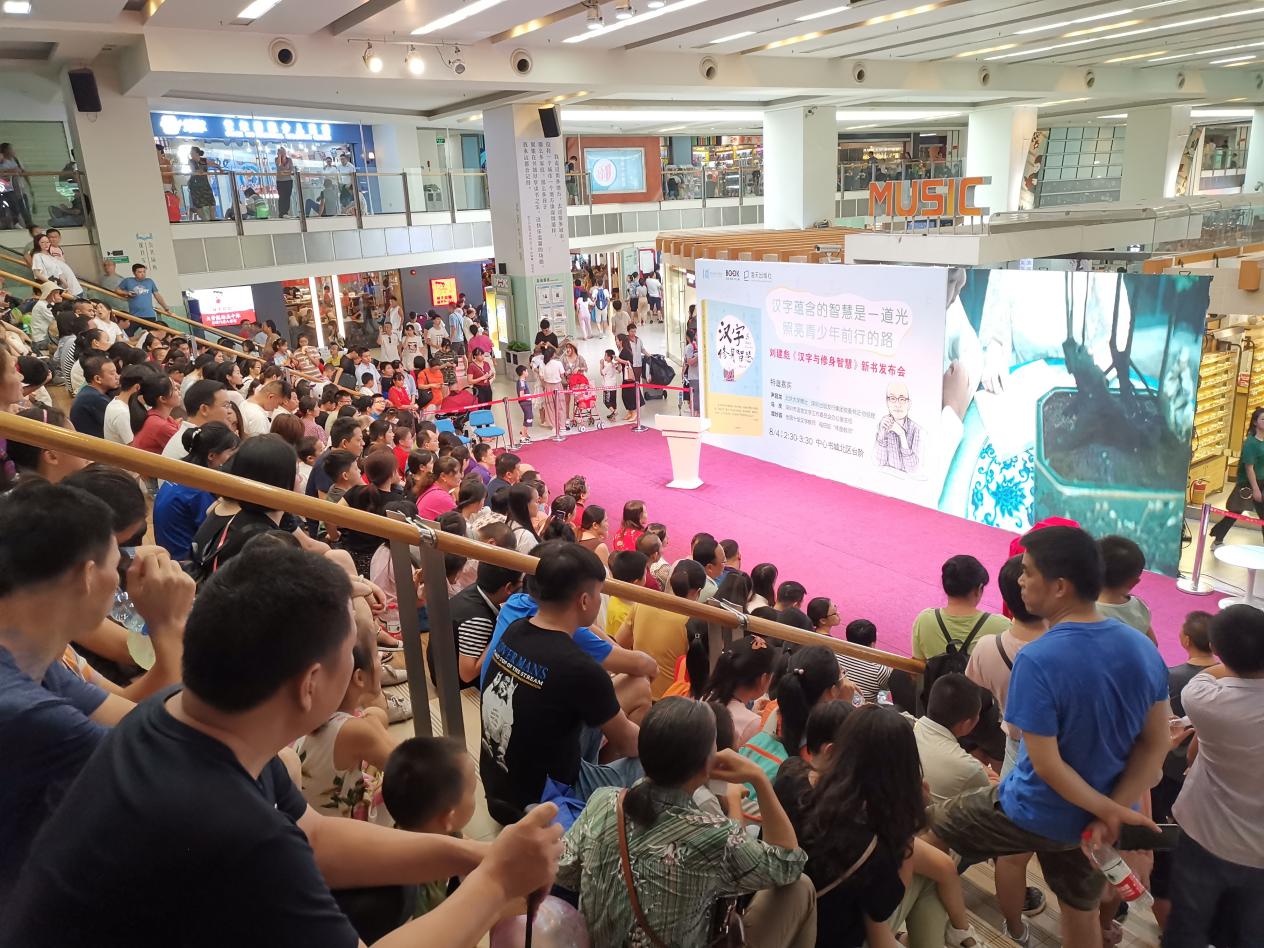深圳新聞網(wǎng)訊 8月4日下午,壹讀書(shū)會(huì)創(chuàng)始人、知名閱讀推廣人劉建彪《漢字與修身智慧》新書(shū)發(fā)布會(huì)在深圳書(shū)城中心城隆重召開(kāi),本次活動(dòng)由海天出版社和深圳書(shū)城中心城共同舉辦,北京大學(xué)文學(xué)博士、深圳出版發(fā)行集團(tuán)黨委 書(shū)記、總經(jīng)理尹昌龍,深圳市語(yǔ)言文字工作委員會(huì)辦公室主任馬慶,全國(guó)十佳文學(xué)教師、福田區(qū)“年度教師”譚妙蓉三位嘉賓蒞臨現(xiàn)場(chǎng)并致辭。本次新書(shū)發(fā)布受到市民的熱烈追捧,活動(dòng)開(kāi)始前中心書(shū)城北區(qū)臺(tái)階、過(guò)道以及走廊或坐著或站著翹首以盼的閱讀愛(ài)好者。