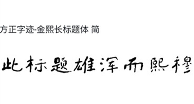 金熙長先生創(chuàng)作的《方正字跡-金熙長標(biāo)題體》,以嚴(yán)謹(jǐn)?shù)膶W(xué)術(shù)態(tài)度,經(jīng)過近四十年來一直不斷的歷代名碑名帖的錘煉化虛,終將難字拆開成“又佳”,形成自已目前“雄渾靜穆與高古野逸為一爐的居士書風(fēng)面貌”。面對《方正字跡-金熙長標(biāo)題體》,讀者只要將目光稍作停留,就不難發(fā)現(xiàn)該字體有以下特色——