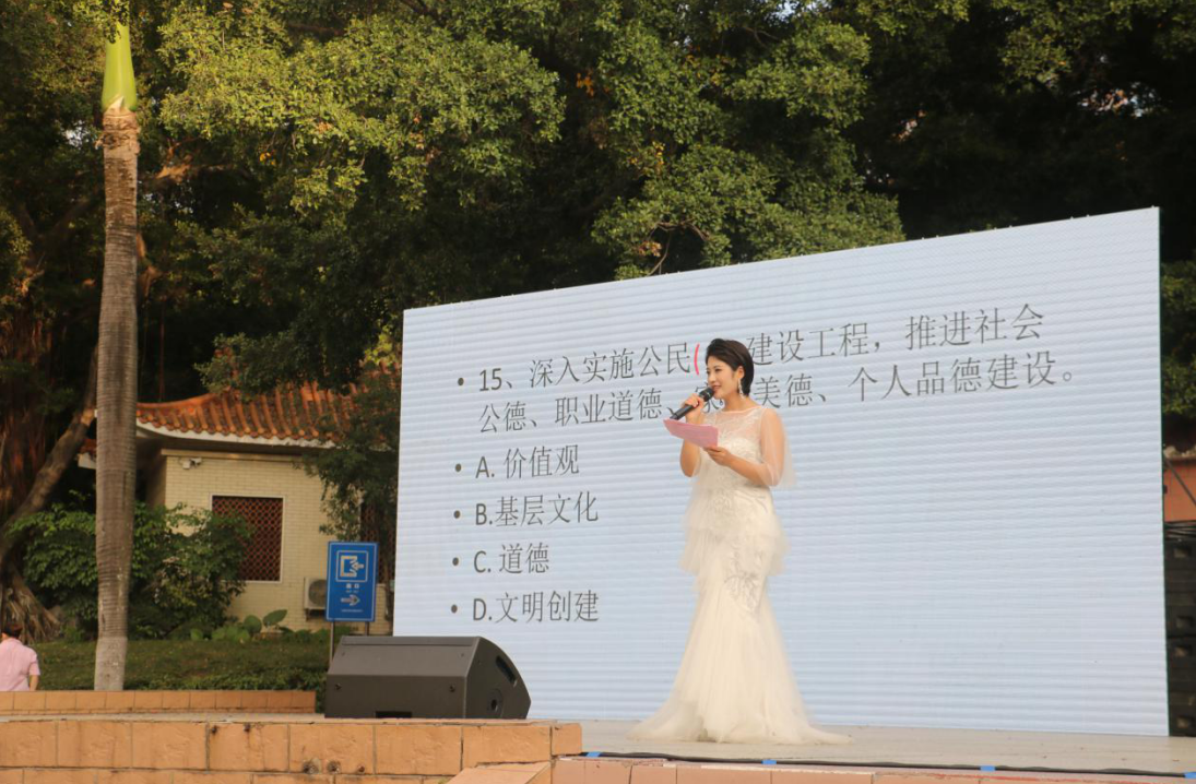 演出在歡快的《永唱中國夢》歌舞中拉開了帷幕;懷舊老歌《紅歌聯唱》經典又回味,越聽越喜歡;特色節(jié)目《李玉剛模仿秀》反串女聲,一開口驚艷全場……整場演出高潮迭起,精彩不斷,觀眾們無不拍手鼓掌,歡呼叫好。節(jié)目主持人在每個節(jié)目之間還以有獎問答的形式,宣傳黨的十九屆五中全會的內容,觀眾們踴躍參與,大家都說,這樣喜聞樂見的活動親切,接地氣,不妨多來幾場。目前,西鄉(xiāng)街道黨工委正在打造“學習強國”示范街區(qū),“今天,你學習了嗎”已成為時尚的見面問候語。(孫善文)