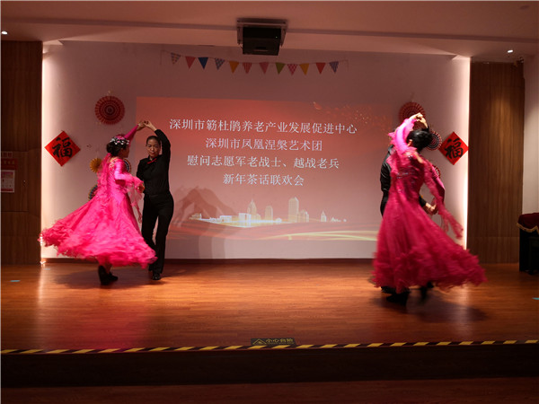 紀念活動伊始,深圳市社會組織管理局副局長白凌在出差途中發(fā)來視頻祝賀。簕杜鵑養(yǎng)老產(chǎn)業(yè)促進中心上級領(lǐng)導(dǎo)張道新也一直關(guān)注和支持活動的進展?;顒蝇F(xiàn)場,簕杜鵑養(yǎng)老產(chǎn)業(yè)促進發(fā)展中心黨支部書記于軍發(fā)表了熱情的簡短的講話。他首先對前來參加和指導(dǎo)活動的老首長、老前輩和各位嘉賓表示衷心的感謝。隨后,他簡短地介紹了簕杜鵑養(yǎng)老中心的發(fā)展情況。他說,該養(yǎng)老中心是按照習(xí)總書記“推動養(yǎng)老事業(yè)多元化、多樣化發(fā)展”的指示下成立的,得到社會管理局的支持和指導(dǎo),將會在深港兩地開展養(yǎng)老信息咨詢、養(yǎng)老機構(gòu)服務(wù)等。目前,成立了簕杜鵑養(yǎng)老產(chǎn)業(yè)發(fā)展中心黨支部、簕杜鵑養(yǎng)老產(chǎn)業(yè)藝術(shù)團,并將爭做黨建、文化建設(shè)的“雙排頭兵”作為該社團的目標之一。今年,已開展獻愛心走訪慰問,重陽節(jié)為羅湖區(qū)鶴年居家養(yǎng)老中心的老人送去4臺多功能輪椅、100支手杖、14400個口罩等實用物品;協(xié)調(diào)部分社康中心、醫(yī)院和相關(guān)基金會共同舉辦大型的老年人義診活動;同時與市內(nèi)多家大健康企業(yè)進行溝通,建立長期聯(lián)合互助渠道,籌建示范養(yǎng)老基地,探索深圳特色的養(yǎng)老模式,打造養(yǎng)服務(wù)品牌,造福深港兩地老人群體。