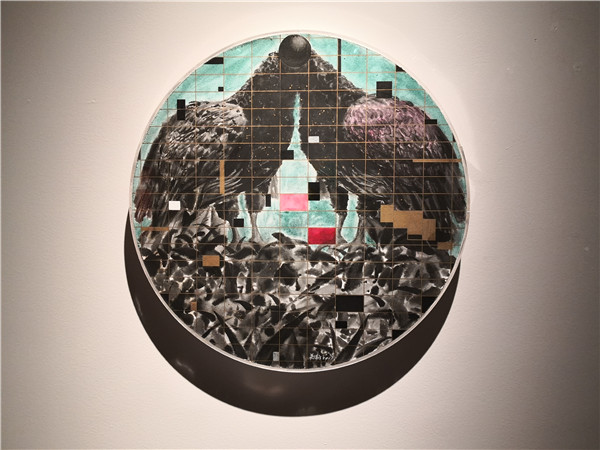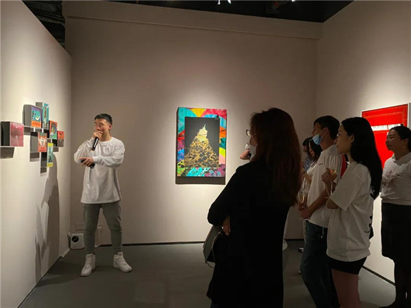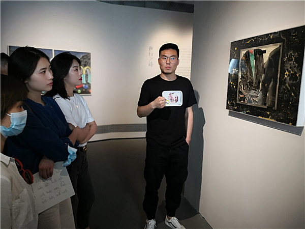 聯(lián)展現(xiàn)場三位作者向參觀者介紹創(chuàng)作經歷及畫作意蘊。