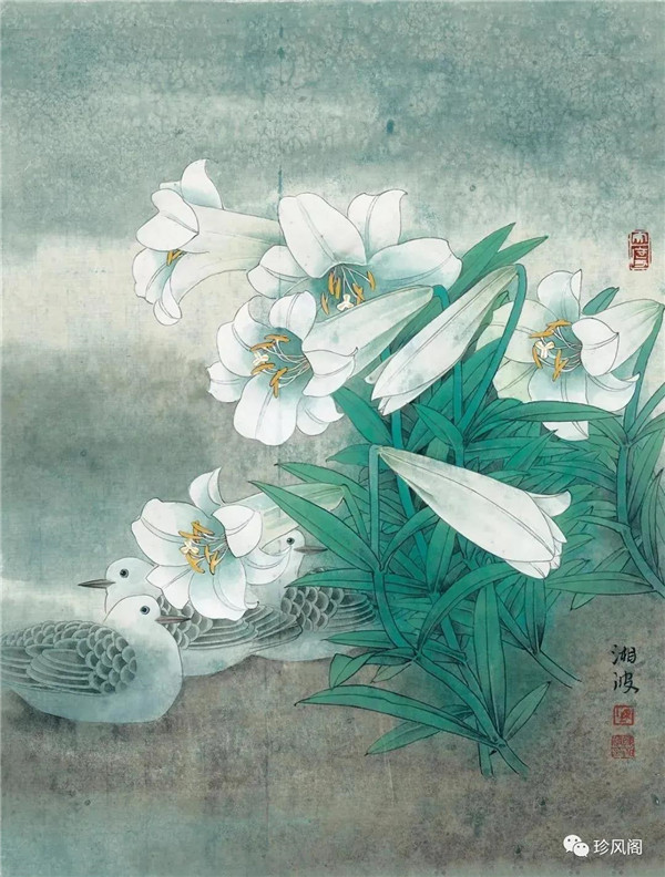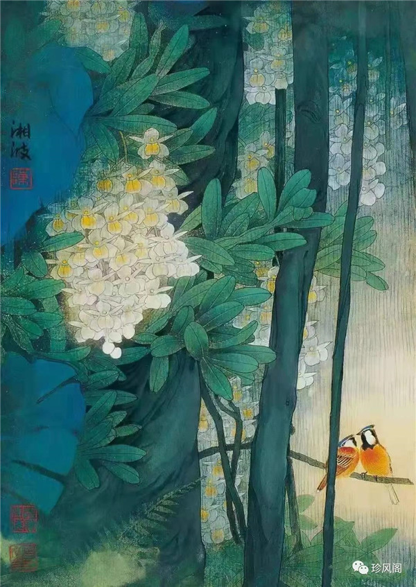 陳湘波的工筆花鳥(niǎo)已是爐火純青,不少作品透現(xiàn)著一種難得的典雅和清麗。每讀一張,都令人耳目一新,留連不已!畫(huà)面上的一枝一葉,一羽一尾,無(wú)論在筆墨,設(shè)色和造型上,都能看出畫(huà)家功力的深厚和技法的精到。