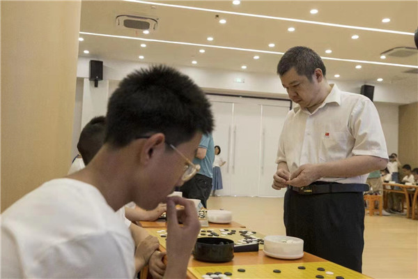 昨天是比賽休息日,深圳龍華隊教練羅洗河九段指導當地愛好者。