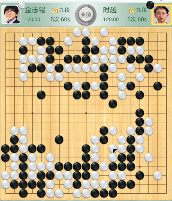 緊接著,時(shí)越執(zhí)黑對(duì)陣金志錫一局傳來(lái)告負(fù)的消息??v觀全局,開(kāi)局時(shí)黑稍好,但中盤(pán)攻擊上邊白棋時(shí)候方向錯(cuò)誤,被白棋聯(lián)絡(luò)后自身還留下了白棋開(kāi)劫的隱患。之后黑棋在劫爭(zhēng)中放棄上方黑子在下邊圍出大模樣爭(zhēng)勝。白棋在黑勢(shì)中施展手段時(shí)黑棋必需尋求凈殺白子。無(wú)奈周邊不夠厚實(shí)殺不掉,遂于174手時(shí)認(rèn)負(fù)。