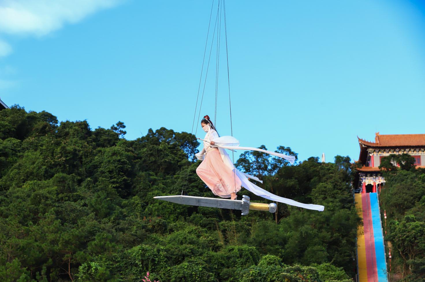 此外,觀音山上還能“御劍飛行”啦!一經(jīng)推出,瞬間成為全網(wǎng)飛天體驗(yàn)中的一股清流,吸引眾多網(wǎng)友的關(guān)注,不禁感嘆,花式之豐富有趣。作為抖音爆火的項(xiàng)目網(wǎng)紅飛天威亞,一直以來(lái)備受游客青睞!國(guó)慶期間,來(lái)觀音山,飛天威亞還能玩出新花樣,為游客提供御劍飛行模式,打造獨(dú)特飛天體驗(yàn)!