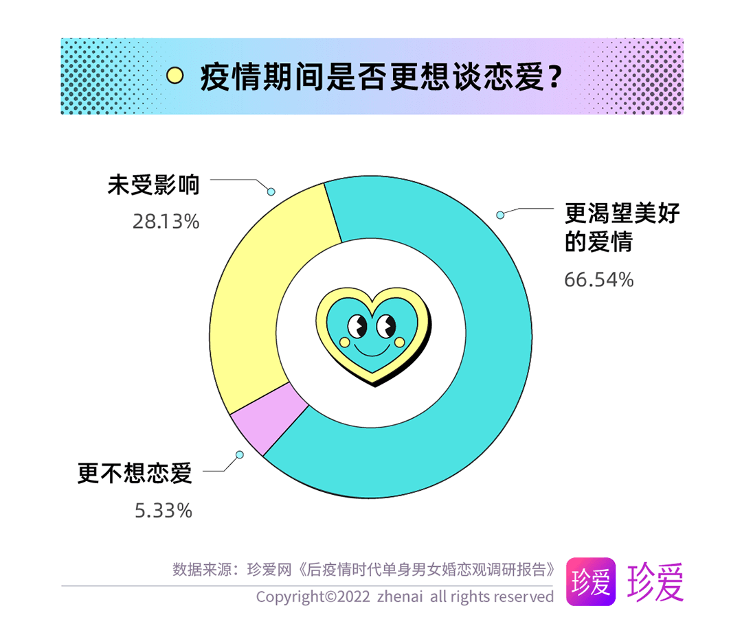 讀特客戶端·深圳新聞網(wǎng)2022年6月14日訊(記者 葉梅)疫情讓人們的生活狀態(tài)、工作方式和個人習慣都發(fā)生了顯著變化,而對單身人群而言,疫情三年他們對感情的態(tài)度又有哪些改變?現(xiàn)在的他們?nèi)绾慰创H密關系?珍愛網(wǎng)聚焦后疫情時代單身人群的婚戀觀發(fā)起調(diào)研,探究疫情期間單身人群在戀愛期待、擇偶標準、脫單難度等方面的變化。本次調(diào)研共回收問卷9862份。