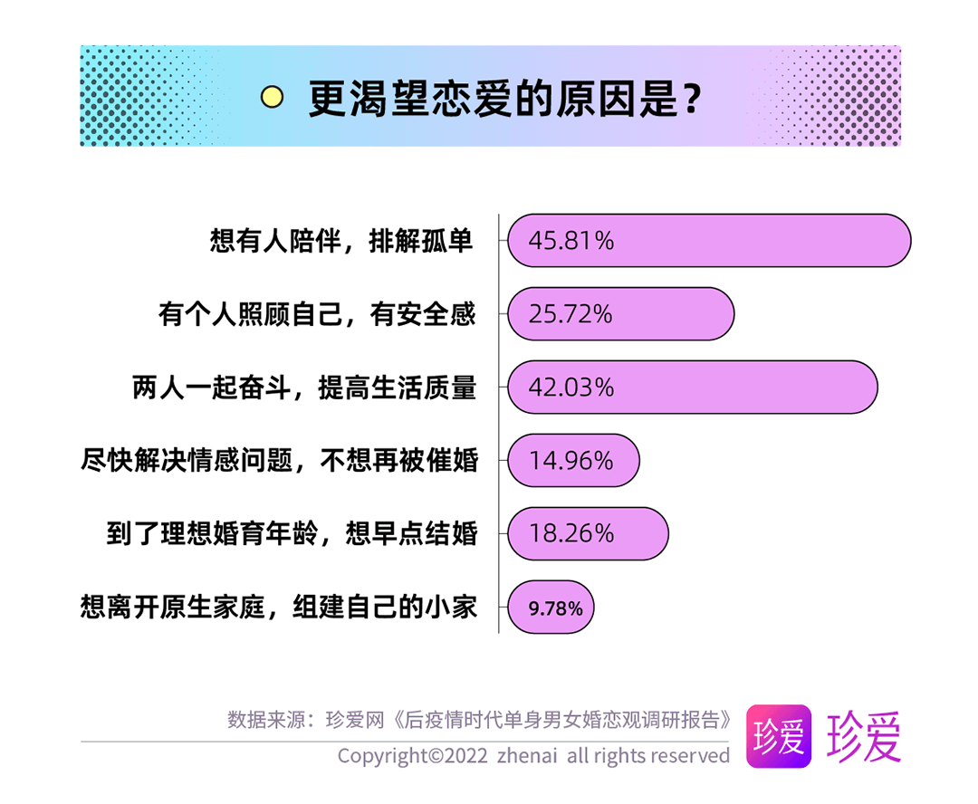對于不同年齡段受訪者的分析發(fā)現(xiàn),30歲以上的用戶更注重愛情的感性價值,脫單首要原因是想要享受愛情、體驗愛與被愛;20-30歲的單身青年們則更希望找到一位與自己共同奮斗的伴侶,提升生活質(zhì)量。