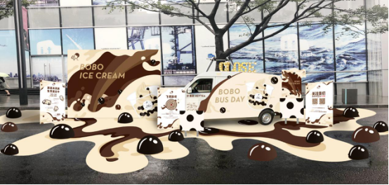 本次喜茶“波波冰淇淋巴士”全面升級,延續(xù)了時尚的波點(diǎn)元素,融入冰淇淋流質(zhì)爽滑的視覺形象,讓整個快閃店在炎熱的夏天也透著一絲絲涼意?,F(xiàn)場還增加了波波冰淇淋背景墻與地貼,烘托了夏天的歡樂氛圍,為消費(fèi)者打造更有趣味性的互動環(huán)境。