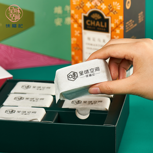 聯(lián)名禮盒經(jīng)過精心設(shè)計,與往常高大上的包裝多了點出彩的地方是運用了粉紅色的包裝,綠色的紙盒腰封像粽子葉一樣相交包裹著原紙盒,粉紅色的內(nèi)盒包裝鑲嵌著祥云的圖騰,顯得很亮眼又高顏值。加上無界工廠的速度配送,相信收到這份禮盒不僅能有溫度,還有能讓人驚喜的顏值。