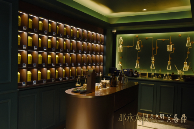 如今來到深圳,以“味道實(shí)驗(yàn)室”為主題,大玩品牌跨界,南方粵菜,北方水餃,新派茶飲,融合出了一家特別的餐廳。一進(jìn)餐廳,化學(xué)公式,實(shí)驗(yàn)玻璃瓶,滴管,試驗(yàn)臺,藍(lán)綠色英倫味道十足的化學(xué)實(shí)驗(yàn)室,重點(diǎn)是,你根本找不到進(jìn)餐廳的門。這種speak easy風(fēng)格都會(huì)以這種“掛羊頭賣狗肉”的方式呈現(xiàn),而開門機(jī)關(guān)就如玩寶藏游戲一般需要自己去發(fā)現(xiàn)。觸碰機(jī)關(guān),才能開啟通往美食的大門!