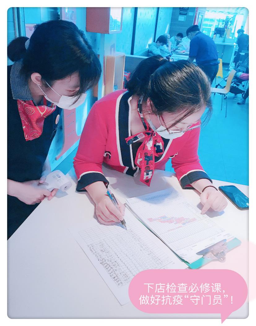 所以,每日的下店檢查是蔡麗麗工作必不可少的一個(gè)環(huán)節(jié)。下店檢查時(shí)看到的問題,會(huì)及時(shí)提出和校準(zhǔn)。確保轄區(qū)所有餐廳可以無(wú)偏差的嚴(yán)格執(zhí)行公司的防疫措施。這時(shí)的“快”和“嚴(yán)”就是“生死時(shí)速”。因?yàn)?,餐廳任何的清潔消毒不到位,都有可能導(dǎo)致員工病毒感染。