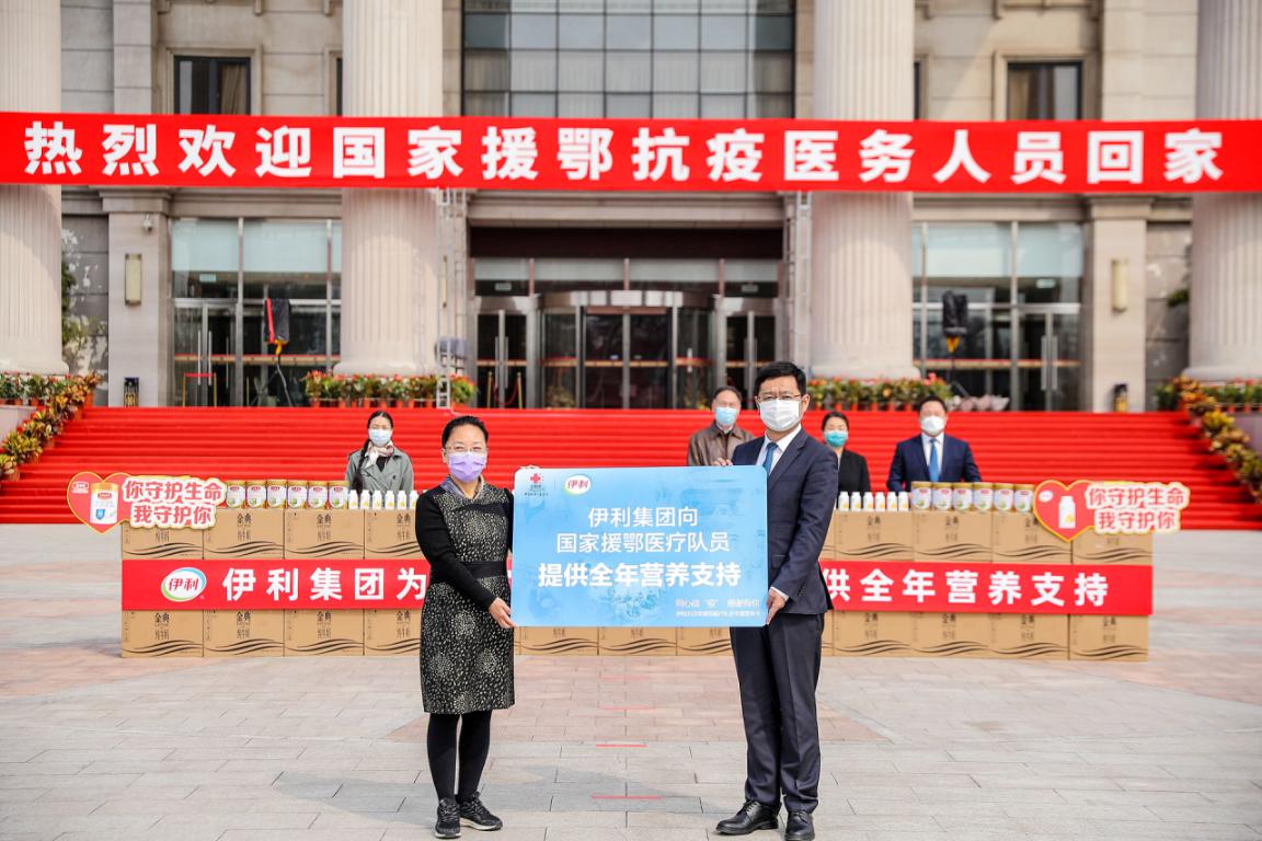 作為健康領(lǐng)域的龍頭企業(yè),伊利一直為抗疫提供支持。3月31日,伊利聯(lián)合國(guó)家衛(wèi)健委第一時(shí)間向全國(guó)所有援鄂醫(yī)療隊(duì)員提供全年?duì)I養(yǎng)支持,用愛心和營(yíng)養(yǎng)持續(xù)守護(hù)一線抗疫醫(yī)療隊(duì)員的健康。這既是疫情爆發(fā)后,伊利為一線抗疫群體送去營(yíng)養(yǎng)關(guān)愛的延伸,也將是隊(duì)員們回到工作崗位后,伊利迎接他們的一聲聲暖心問候。國(guó)家衛(wèi)生健康委食品安全標(biāo)準(zhǔn)與監(jiān)測(cè)評(píng)估司一級(jí)巡視員張磊時(shí)表示肯定和贊賞:“伊利為疫情防控工作做出了重要貢獻(xiàn),此次伊利第一時(shí)間為凱旋歸來的國(guó)家援鄂醫(yī)療隊(duì)提供全年?duì)I養(yǎng)支持,用愛心和營(yíng)養(yǎng)持續(xù)守護(hù)隊(duì)員們的健康,這一切都讓我們看到了龍頭企業(yè)的社會(huì)責(zé)任與擔(dān)當(dāng)?!?/p>