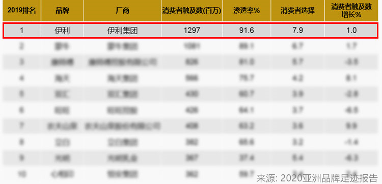 伊利連續(xù)五年位列中國市場消費者選擇最多的品牌榜首