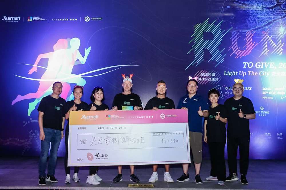 見圳客戶端·深圳新聞網(wǎng)2020年10月29日訊 近日,深圳區(qū)域2020“Run to Give”慈善夜跑圓滿落幕,14家萬豪國(guó)際集團(tuán)旗下的深圳酒店,超過300位員工及跑步愛好者參加,分為2公里歡樂跑、2公里和6公里競(jìng)賽跑兩個(gè)類別,“專業(yè)”與“友誼”兩組。今年的活動(dòng)特地選址在大灣區(qū)新地標(biāo)——華僑城歡樂港灣,選手們?cè)诰p紅的夕陽下,微涼的秋夜里佩戴熒光眼鏡,手環(huán)等配飾,沿環(huán)氧跑道激情開跑,成為都市夜色里一道靚麗的風(fēng)景線,而選手們亦能將灣區(qū)之光摩天輪,慶典廣場(chǎng)主題水秀及前海灣等濱海旖旎景致盡收眼底。值得一提的是,現(xiàn)場(chǎng)慈善義賣及線上直播也為活動(dòng)增色頗多,備受推崇。本次活動(dòng)募集善款共70,840元,將全數(shù)捐獻(xiàn)給姚基金,助力青少年健康及教育事業(yè)。