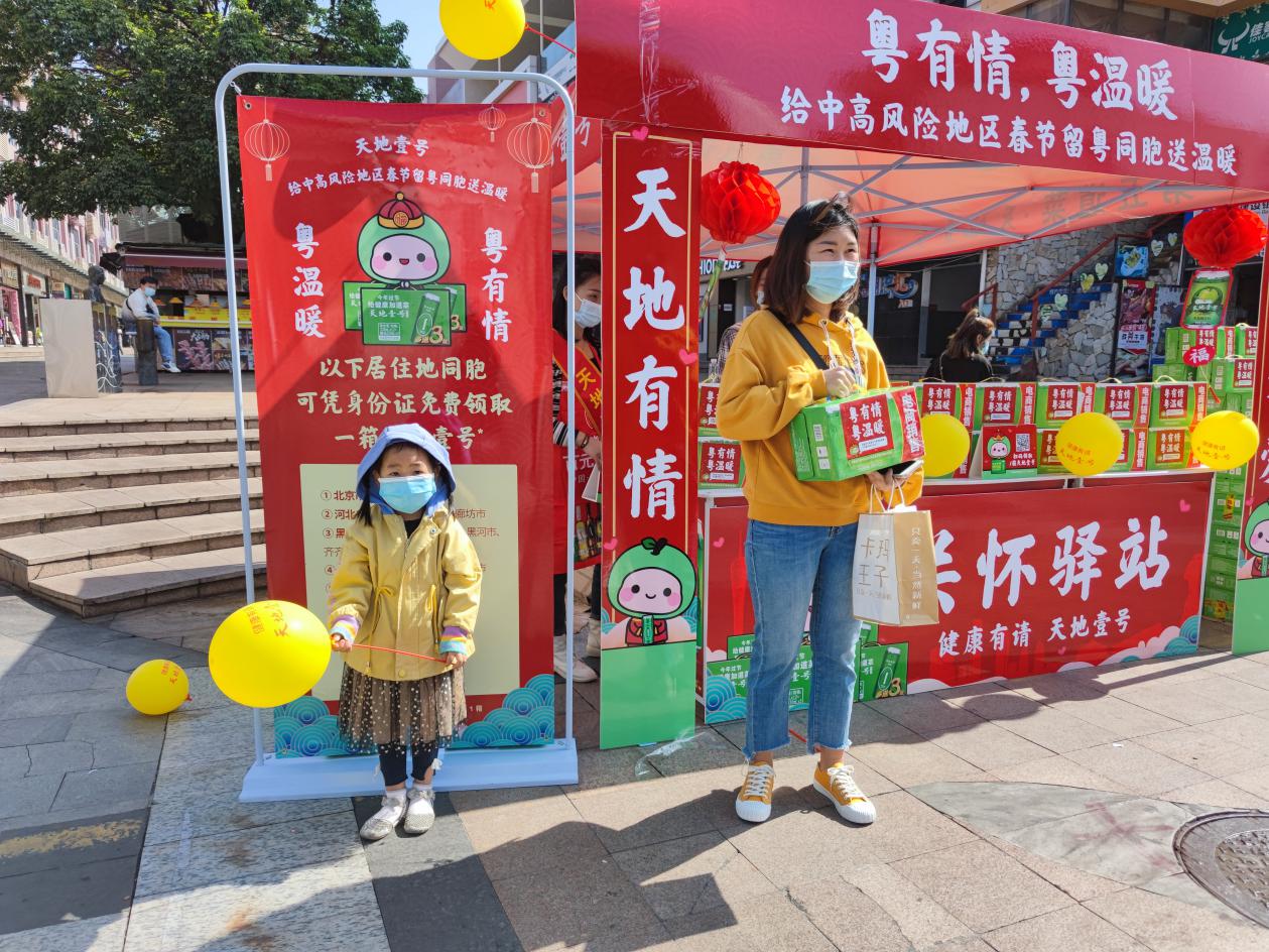據(jù)了解,天地壹號(hào)在廣東市場(chǎng)開展的“粵有情粵溫暖”公益活動(dòng),2月1日至2月3日,將在廣州、深圳、東莞、佛山、中山、珠海、惠州等7個(gè)珠三角城市22個(gè)區(qū)鎮(zhèn)的中心地帶開設(shè)“關(guān)懷驛站”,共準(zhǔn)備了近3萬份健康禮包?!拔覀?cè)诰〇|還準(zhǔn)備了2000萬元的親情補(bǔ)貼券,如果大家想家了,可以領(lǐng)取這份親情補(bǔ)貼,為家人寄去思念和祝福。”上述負(fù)責(zé)人說。