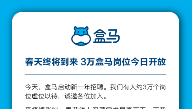 盒馬全國招聘3萬人新增百店:對未來充滿信心