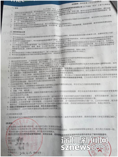 合同上標明著“超過10天將不予辦理任何理由的退學申請”