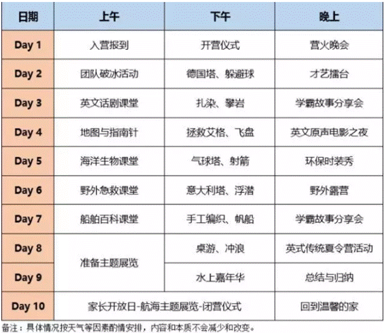 下午:沖浪挑戰(zhàn),水上嘉年華,英式傳統(tǒng)夏令營,游戲時(shí)間