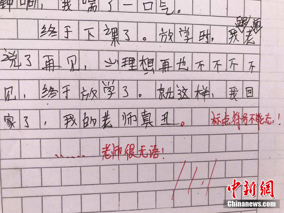 小學生作業(yè)留言笑哭老師 老師的評論也亮了