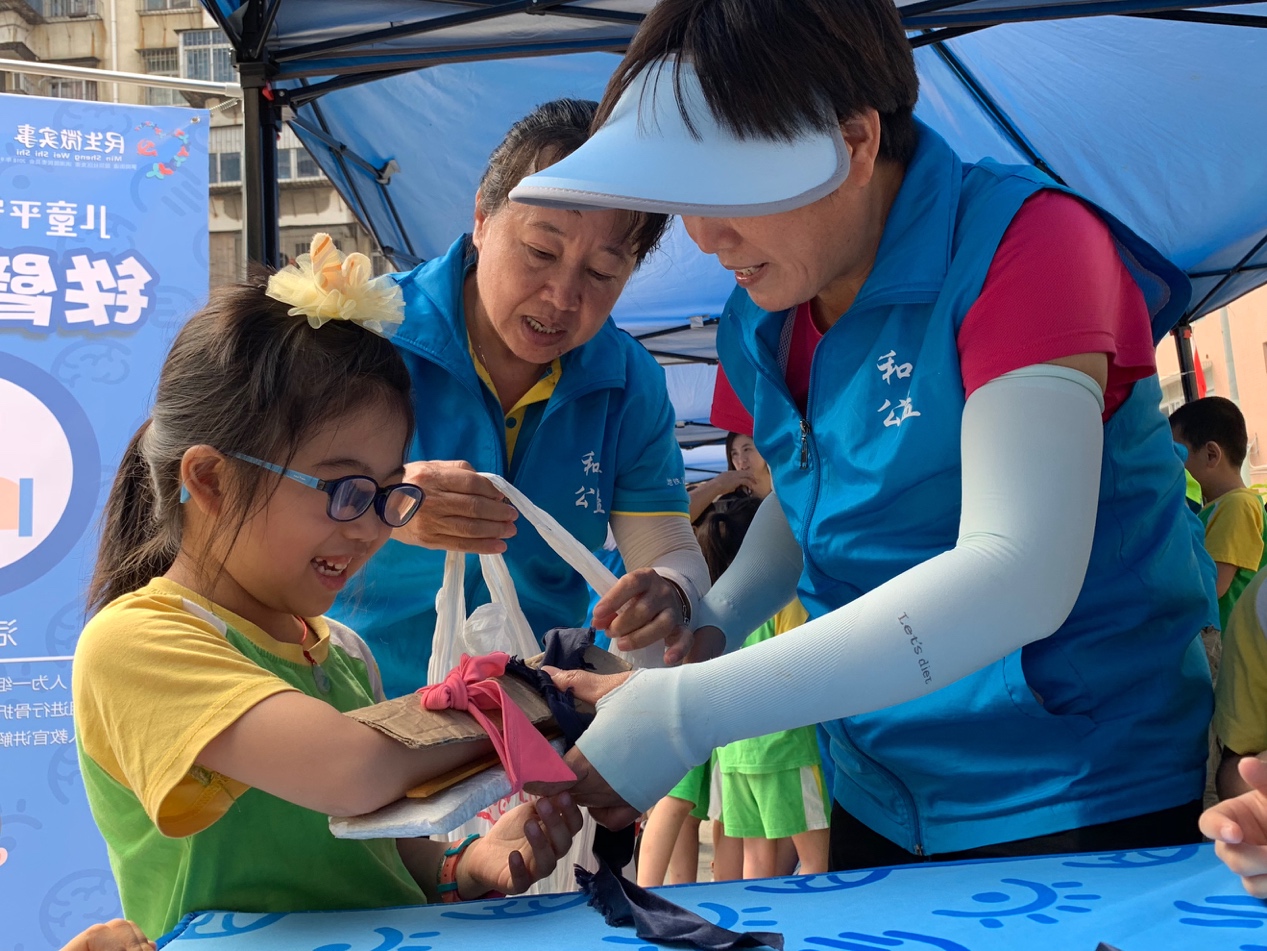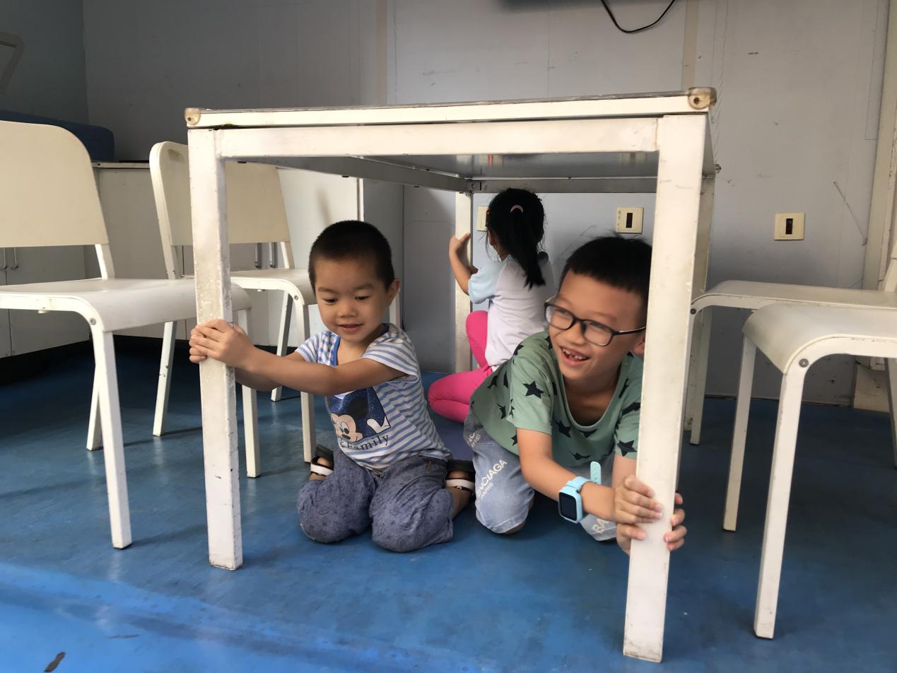 兒童平安訓(xùn)練營活動共有5個版塊,分別是動感地帶、火眼金睛、鐵壁鋼手、浮力盔甲、應(yīng)急包。動感地帶活動版塊的主體是地震體驗平臺,通過安全教育車的地震體驗功能,社區(qū)居民成功學會地震躲避知識要點:規(guī)避易倒塌、易破碎、已墜落三類物品;桌下/床下躲避跪、躲、抓三大要點。浮力盔甲是當身邊發(fā)生溺水或者存在溺水隱患時,可以利用身邊常用的物品比如礦泉水瓶和衣服制作緊急救生衣。鐵壁鋼手是災(zāi)害發(fā)生、救援難以及時到達情況下,利用身邊的物品,對手臂骨折者進行簡易包扎?;鹧劢鹁κ窃谠S多大地震、火災(zāi)和意外傷害中,教會學生認識一些室內(nèi)、室外的常見安全隱患。