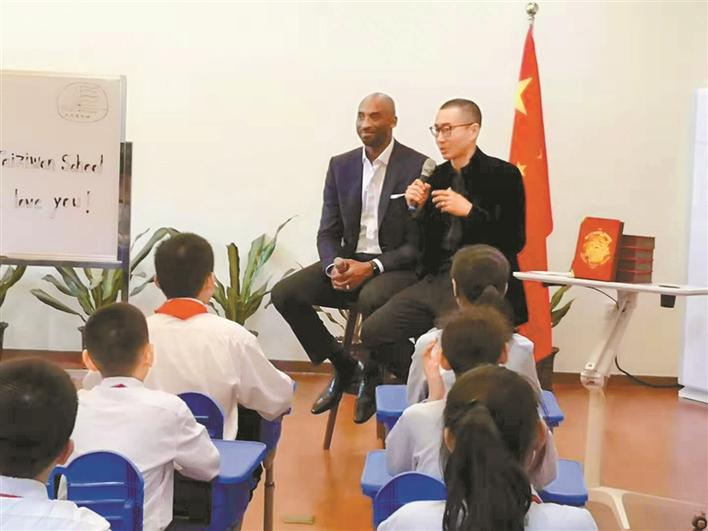 “來(lái)了,來(lái)了!”隨著人群的騷動(dòng),一個(gè)高大的身影閃了進(jìn)來(lái),科比手捧一束鮮花來(lái)到了課堂??票鹊牡絹?lái),讓大家正襟危坐,聽(tīng)從偶像的人生教誨。