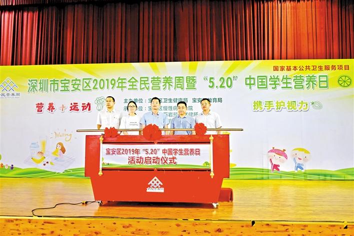 寶安日報5月21日訊 你每天運(yùn)動夠60分鐘了嗎?每天都有吃蔬菜水果嗎?如今,已有越來越多的人重視營養(yǎng)、運(yùn)動與人體健康的關(guān)系,每年的5月20日是中國學(xué)生營養(yǎng)日,今年的主題是“營養(yǎng)+運(yùn)動,攜手護(hù)視力”。5月20日下午,寶安區(qū)2019年全民營養(yǎng)周暨“5·20”中國學(xué)生營養(yǎng)日在石巖湖學(xué)校舉行。