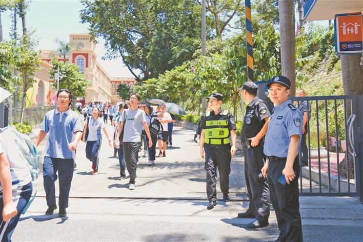 據(jù)悉,今年南山區(qū)共有5個考點,167個考場,4640名考生參加考試。高考期間,南山警方在分局指揮中心設立總指揮部,在南頭中學、深大附中、第二高級中學、華僑城中學、育才中學等5個高考考點設現(xiàn)場指揮部,全面統(tǒng)籌各項高考安保工作。同時,聯(lián)合學校、交警、消防等部門,加強對考點及周邊重點單位、公園、商圈的檢查巡邏力度,積極排查各類安全隱患,確保轄區(qū)考點平安有序,保障考生順利參考。在加大治安巡防、安全檢查、交通疏導力度的同時,南山警方同步做好服務工作。高考期間,南山警方為高考考生搭建安全便捷的綠色通道。6月7日,南山警方先后為2名“三考”考生辦理臨時身份證,從受理、制證到發(fā)證,20分鐘內(nèi)迅速完成,確??忌馨残母翱肌?/p>