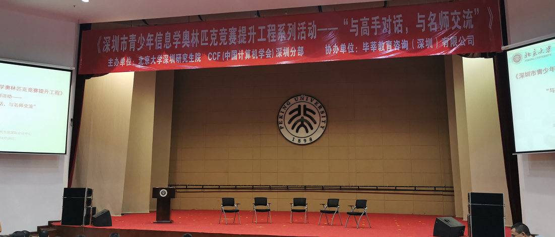 見圳客戶端、深圳新聞網(wǎng)8月16日訊 近日,深圳市青少年信息學(xué)奧林匹克競(jìng)賽提升工程系列活動(dòng)——“與高手對(duì)話,與名師交流”在北京大學(xué)深圳研究生院國(guó)際會(huì)議報(bào)告廳舉行。本次活動(dòng)由北京大學(xué)深圳研究生院、 CCF(中國(guó)計(jì)算機(jī)學(xué)會(huì))深圳分部聯(lián)合主辦,畢莘教育咨詢(深圳)有限公司協(xié)辦。