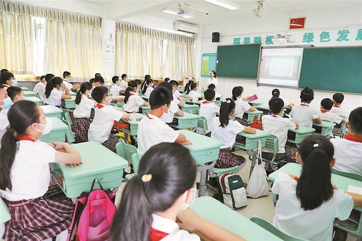 福強小學(xué)學(xué)生在教室收看同步直播的復(fù)學(xué)第一課。