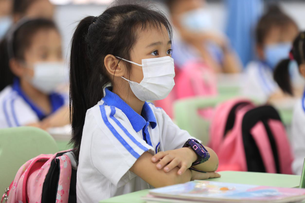 上課時(shí)也是要戴口罩的,但這并不影響大家上課的積極,依然是爭先搶后的舉手。