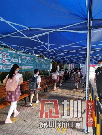 我起了個大早,高高興興地來到學(xué)校。在校門口不遠(yuǎn)處,我看見一排排金色小腳印在望著我笑,好像在對我說:“歡迎你返校!”進(jìn)入校園后,熟悉的林蔭道下多了許多的大帳篷,帳篷中間有一個巨大的測溫箱。走過測溫箱,一排感應(yīng)免洗洗手液站得筆直,正在招呼我們趕緊洗手消毒。因?yàn)樾鹿谝咔?,我們的校園不一樣了,多了許多守護(hù)我們健康的安全小衛(wèi)士。