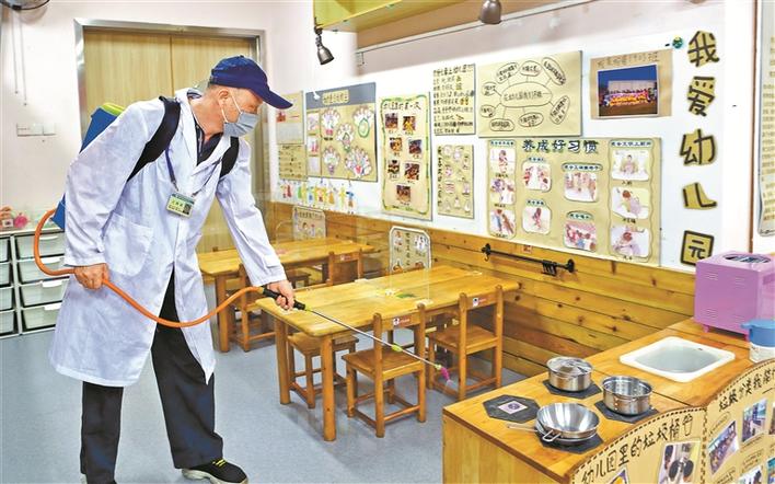 為做好開園準(zhǔn)備,前日,南山區(qū)教育幼兒園聘請專業(yè)消殺公司對園區(qū)進(jìn)行消殺。深圳特區(qū)報記者周紅聲攝