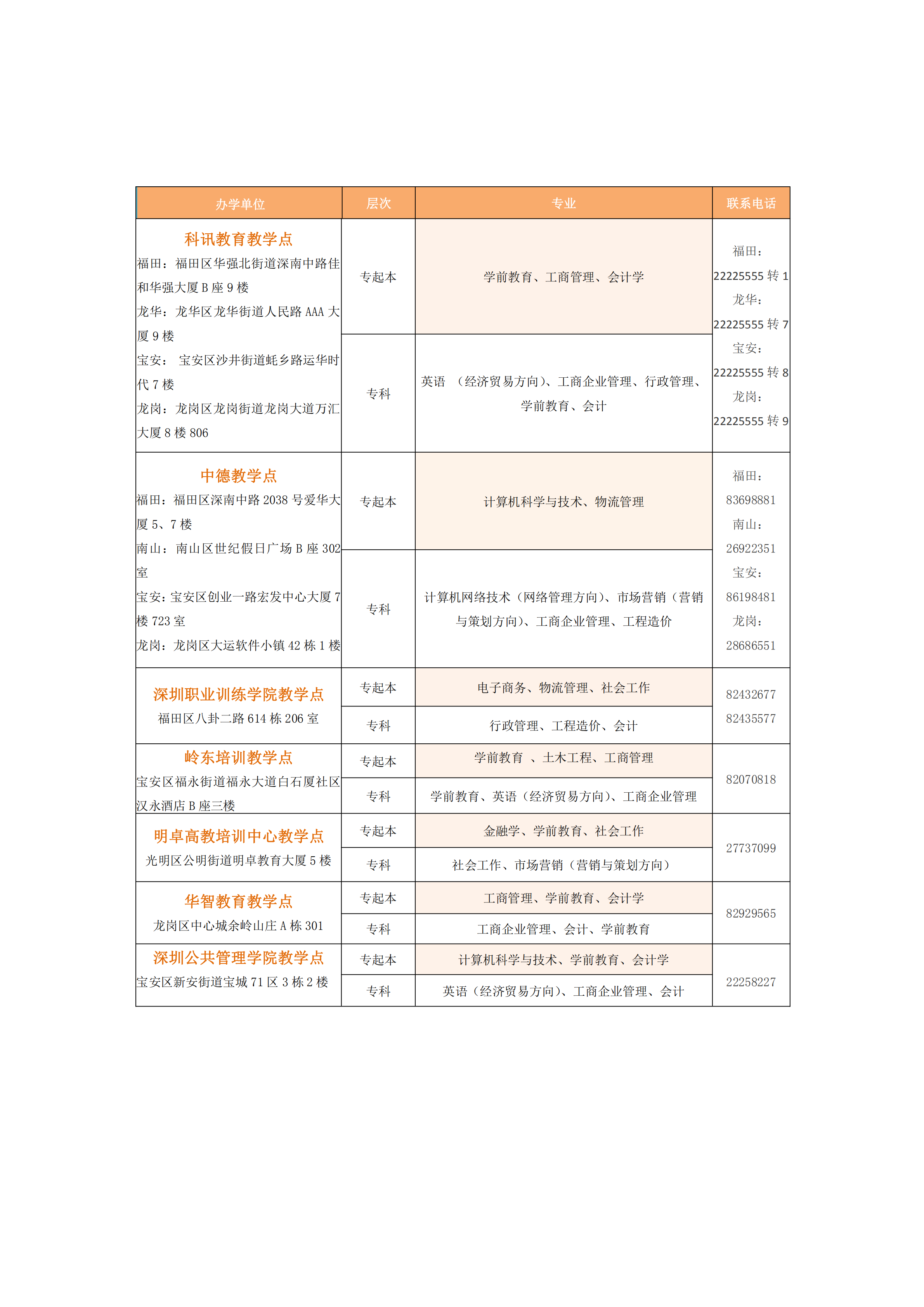 說明:報(bào)讀分校、學(xué)院、教學(xué)點(diǎn)者,請聯(lián)系各分校、學(xué)院、教學(xué)點(diǎn)辦理報(bào)名手續(xù)。