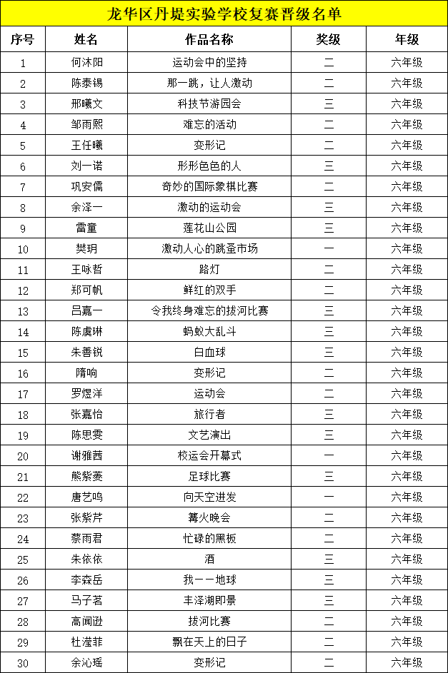 自2021年1月,活動征稿啟動以來,獲得了深圳市廣大中小學(xué)生、教師、文學(xué)愛好者的熱烈響應(yīng)積極參與,吸引了深圳百余所學(xué)校的上萬人關(guān)注報(bào)名?,F(xiàn)公布龍華區(qū)丹堤實(shí)驗(yàn)學(xué)校晉級復(fù)賽名單如下: