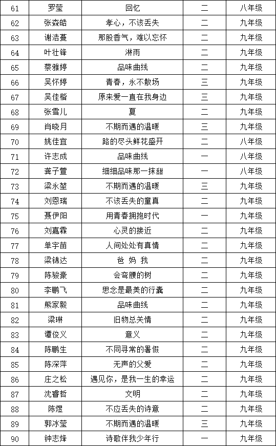 自2021年1月,活動(dòng)征稿啟動(dòng)以來(lái),獲得了深圳市廣大中小學(xué)生、教師、文學(xué)愛好者的熱烈響應(yīng)積極參與,吸引了深圳百余所學(xué)校的上萬(wàn)人關(guān)注報(bào)名。現(xiàn)公布深圳市紅桂中學(xué)晉級(jí)復(fù)賽名單如下: