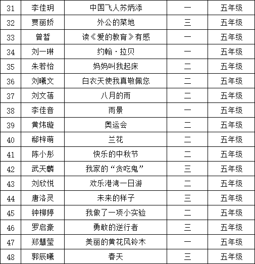 自2021年1月,活動(dòng)征稿啟動(dòng)以來(lái),獲得了深圳市廣大中小學(xué)生、教師、文學(xué)愛(ài)好者的熱烈響應(yīng)積極參與,吸引了深圳百余所學(xué)校的上萬(wàn)人關(guān)注報(bào)名?,F(xiàn)公布南山區(qū)荔香學(xué)校晉級(jí)復(fù)賽名單如下: